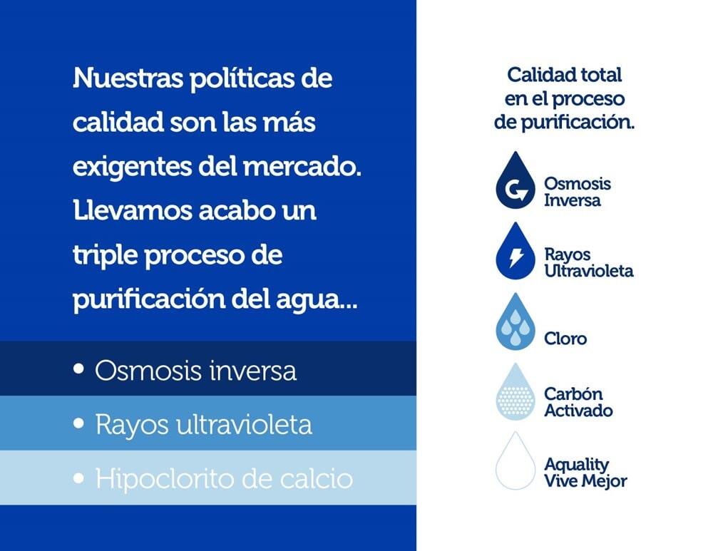En AGUA PURIFICADA AQUALITY tenemos diferentes equipos para las diferentes capacidades de consumo. Además, cumplimos con la normatividad mexicana NOM - 201 - SSA1-2015 y con todos los requerimientos para el manejo de agua purificada.